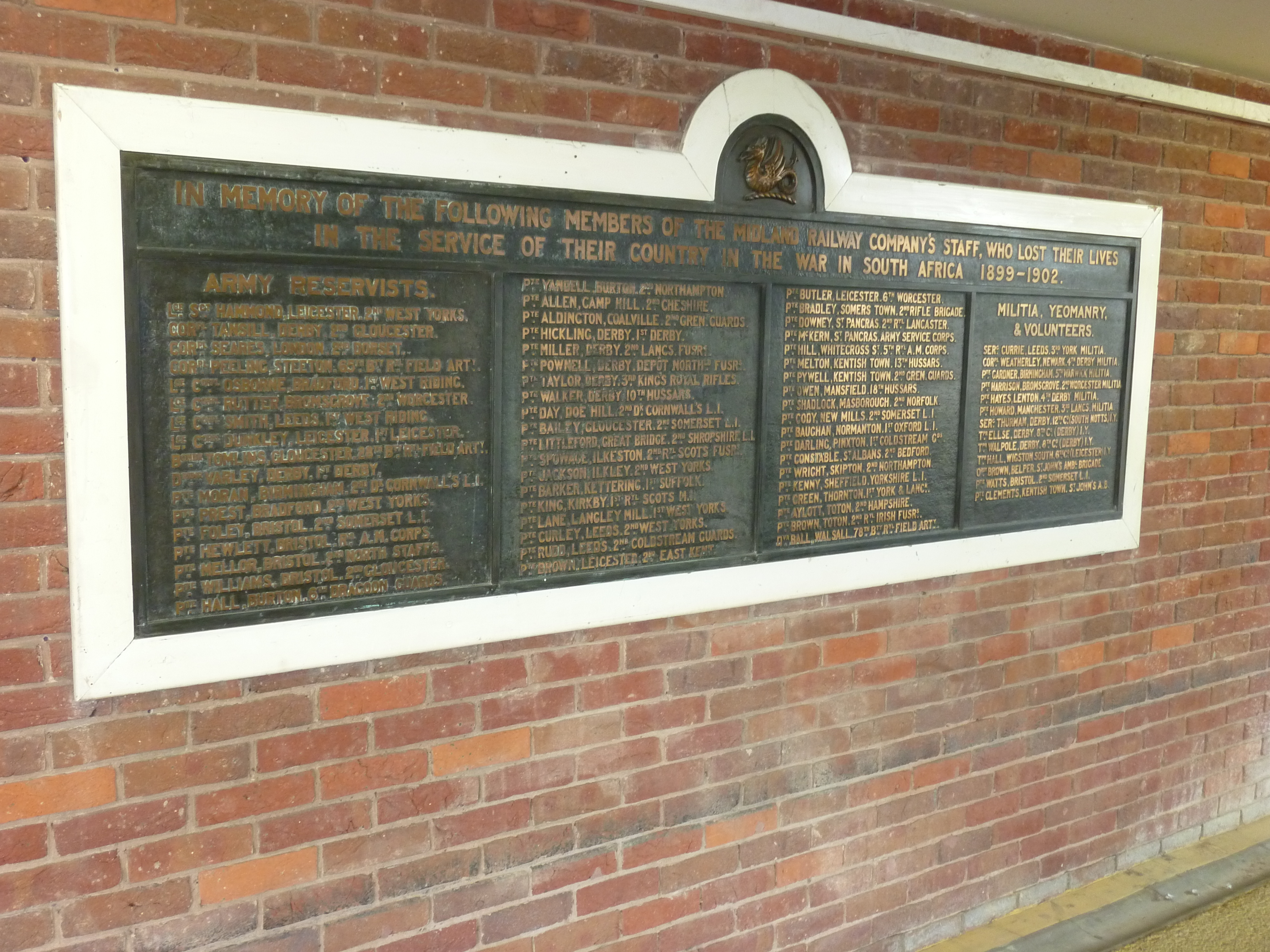 The oldest such memorials date to the Boer War, but few survive from that period. The most noticeable are those of the Midland Railway at Derby Station, and the London & North Western Railway in the Queen’s Park in Crewe.